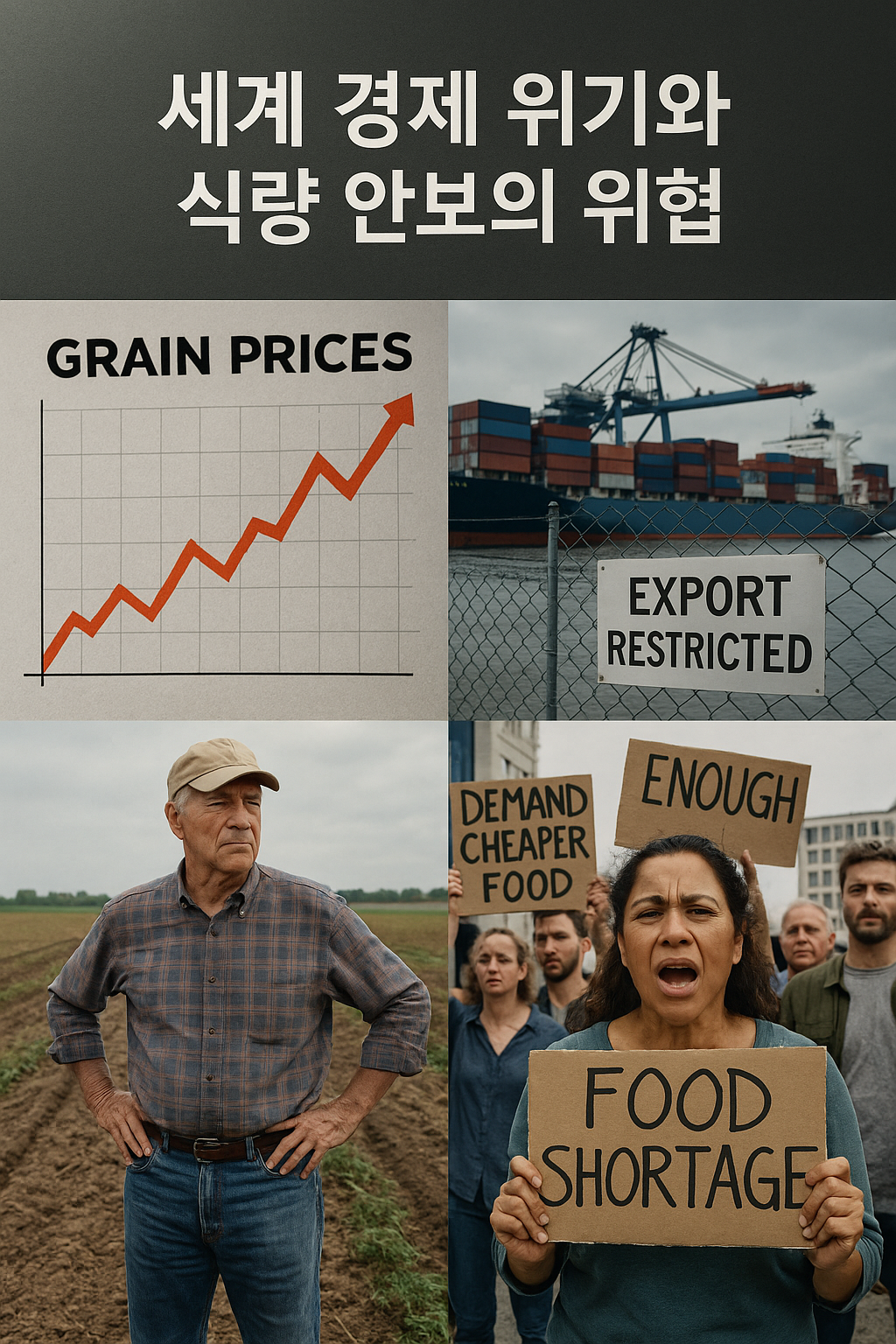 식량은인류 생존의 기본조건이자경제안정의핵심축이다. 그러나 세계경제위기발생시식량안보는 가장 먼저 위협받는다. 경제위기로 국제무역이 위축되면 식량수입국은 필수자원을 확보하기 어려워지고, 농업투자축소는 중장기적 생산능력을 악화시킨다. 또한 원자재와 에너지가격급등은 비료·운송비용을 증가시켜 식량가격상승을 가속화한다. 2008년 글로벌금융위기직후곡물가격급등은 전 세계적으로 식량폭동을 불러왔고, 최근러시아-우크라이나전쟁은 흑해곡물수출차질을 통해 세계식량가격을 급등시켰다. 이처럼 경제위기와 식량안보는 떼려야 뗄 수 없는 관계에 있다.